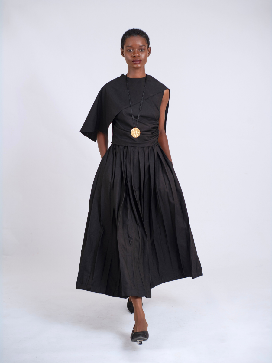 Black Pleated Skirt in Cotton Cashmere