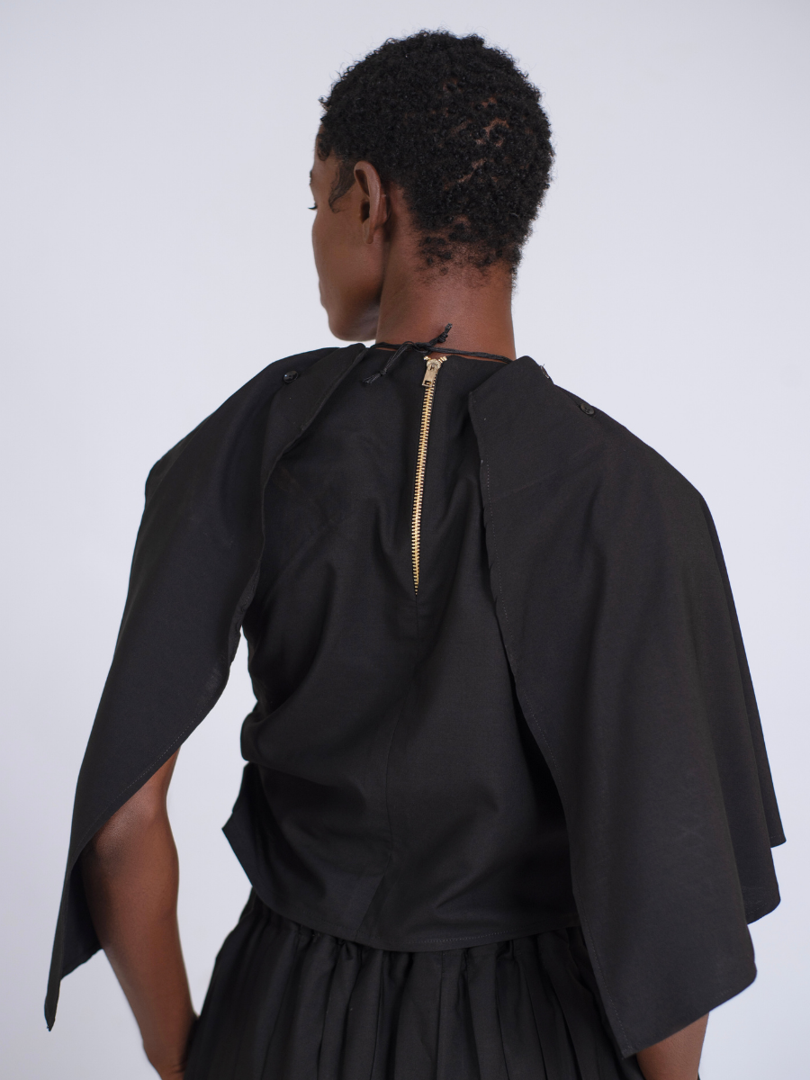 Black Scarf Blouse in Cotton Cashmere