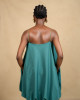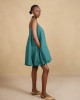 This dress is a vibrant piece with a minimalist A-line silhouette. It features thin spaghetti straps and a relaxed, balloon-shaped hem, creating a playful and airy look. The dress is designed for comfort and ease, making it a perfect choice for casual outings. The rich green hue adds a pop of color, while the simple design ensures versatility and timeless elegance.