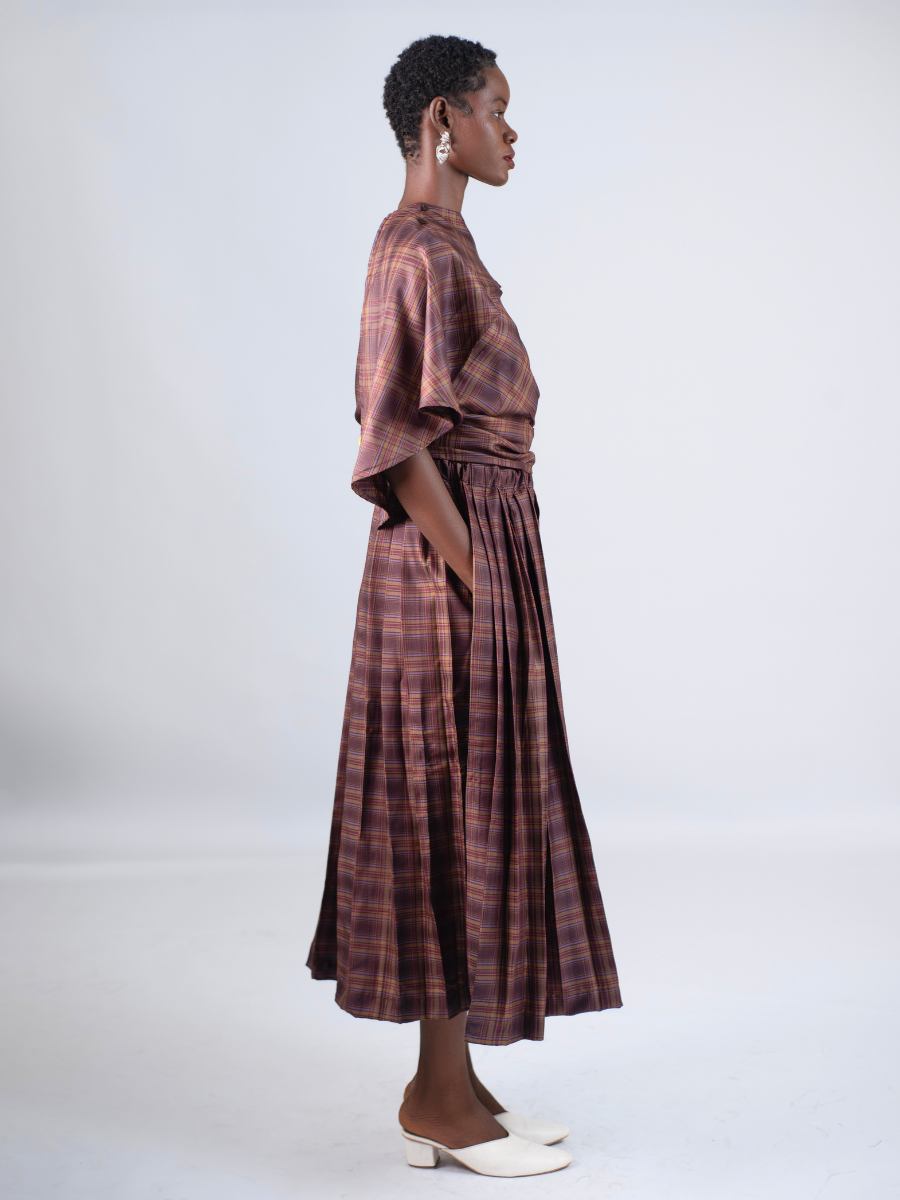 Check Pleated Skirt in Cotton Cashmere