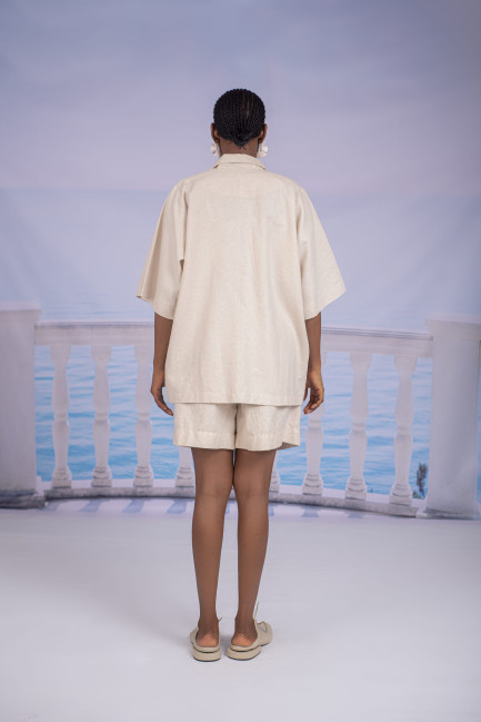 Easy, effortless, and quietly refined. This kaftan features two oversized front pockets, boxy sleeves, wooden button accents, and a soft pleat at the back for subtle shape and movement.