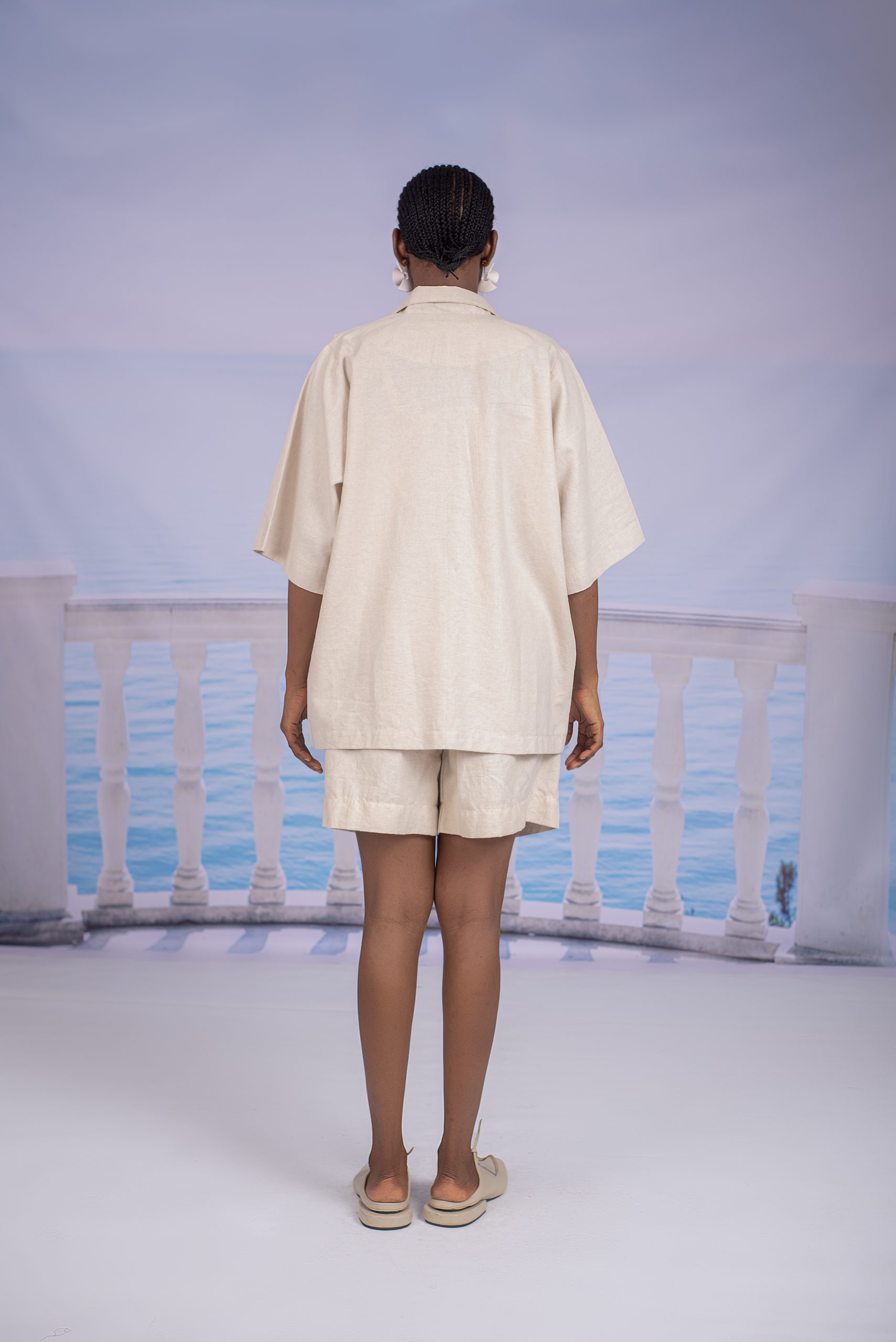 Short-Sleeve Shirt in Beige Linen